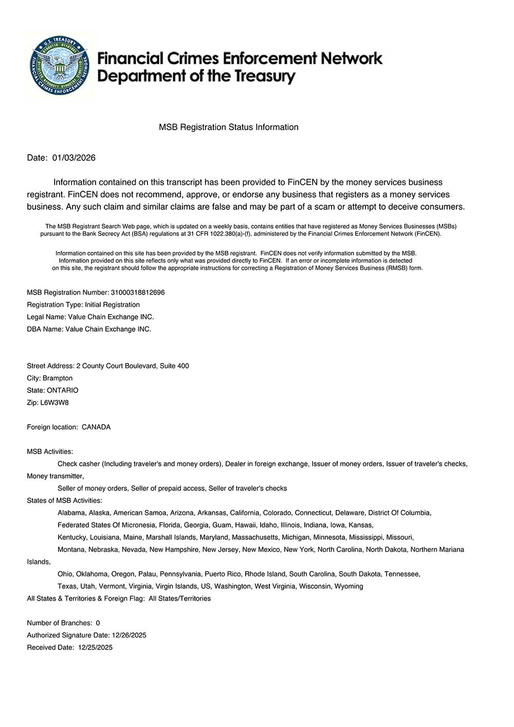 Official certificates of recognition